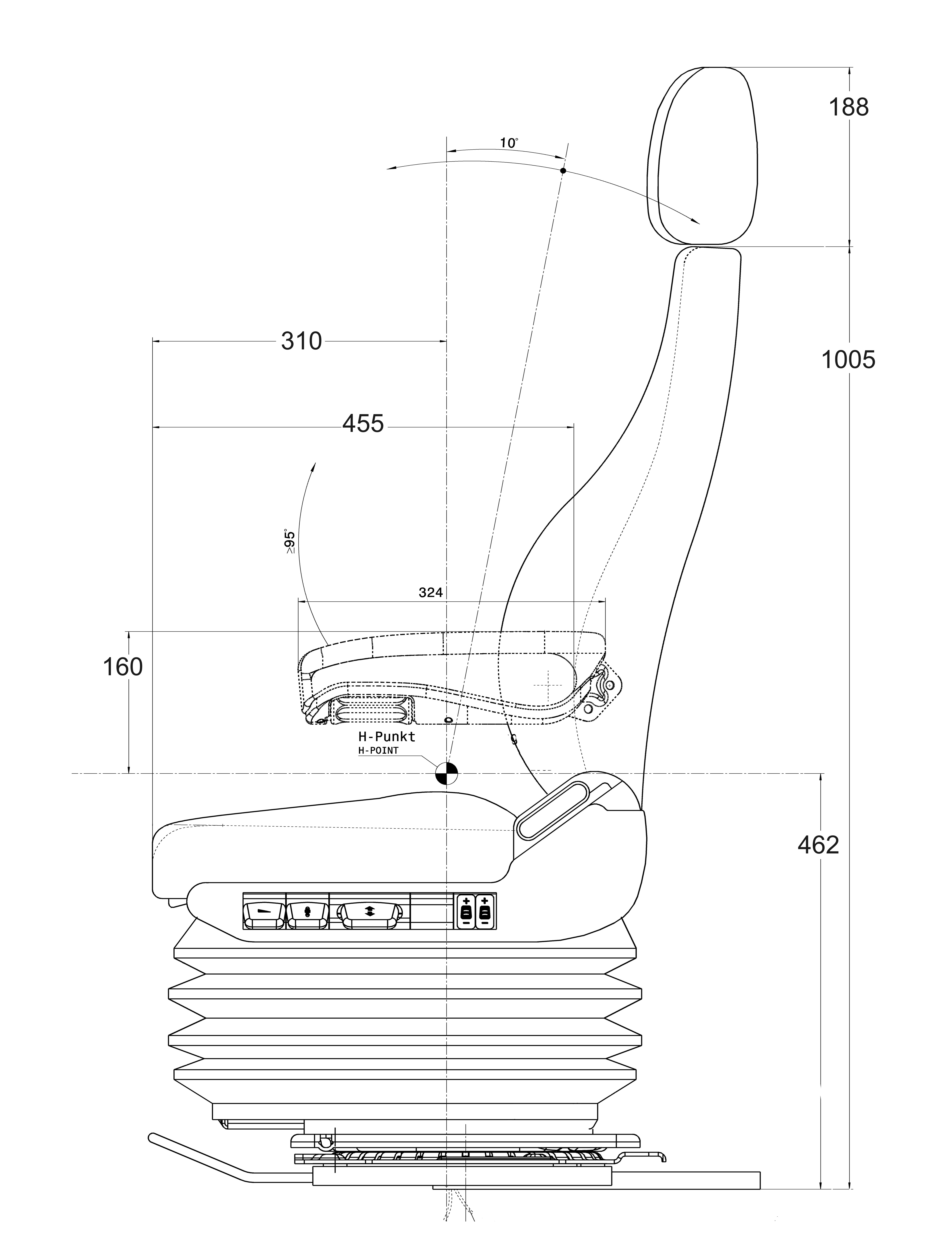 | Höheneinstellung: | 100 mm pneumatisch |