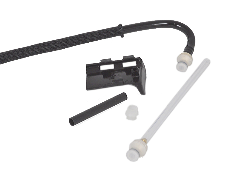 - Formschlauch hart mit 90°Bogen und Steckanschluss, Durchmesser 8 x 6 mm - Klarsichtschlauch hart mit Steckanschluss, Länge 160 mm / Durchmesser 6 x 4 mm