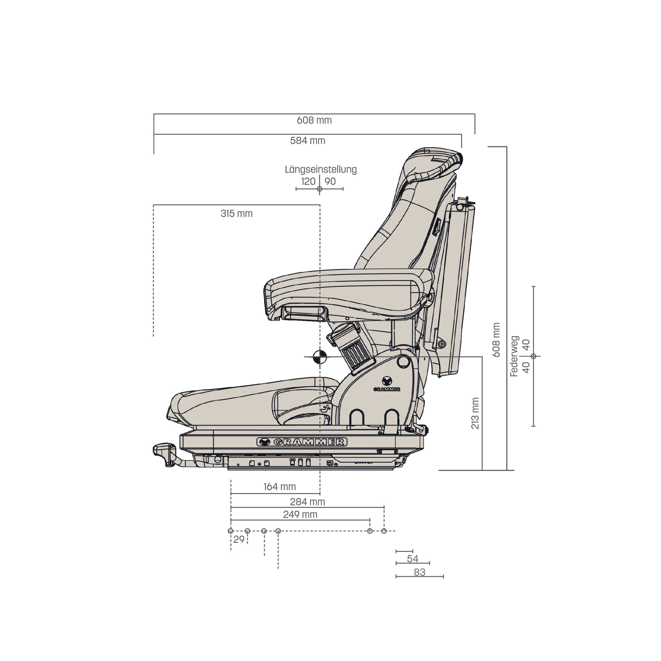 - Längsverstellung 210 mm
